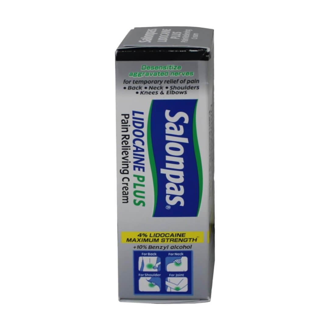 Salonpas Lidocaine Plus Cream provides fast-acting, targeted relief from pain, itching, and discomfort. Formulated with maximum-strength lidocaine, it works by numbing the affected area while soothing irritation. The non-greasy cream absorbs quickly, leaving no mess and delivering long-lasting comfort. Conveniently packed in a set of three, itβs ideal for managing everyday aches, nerve pain, and skin irritations.