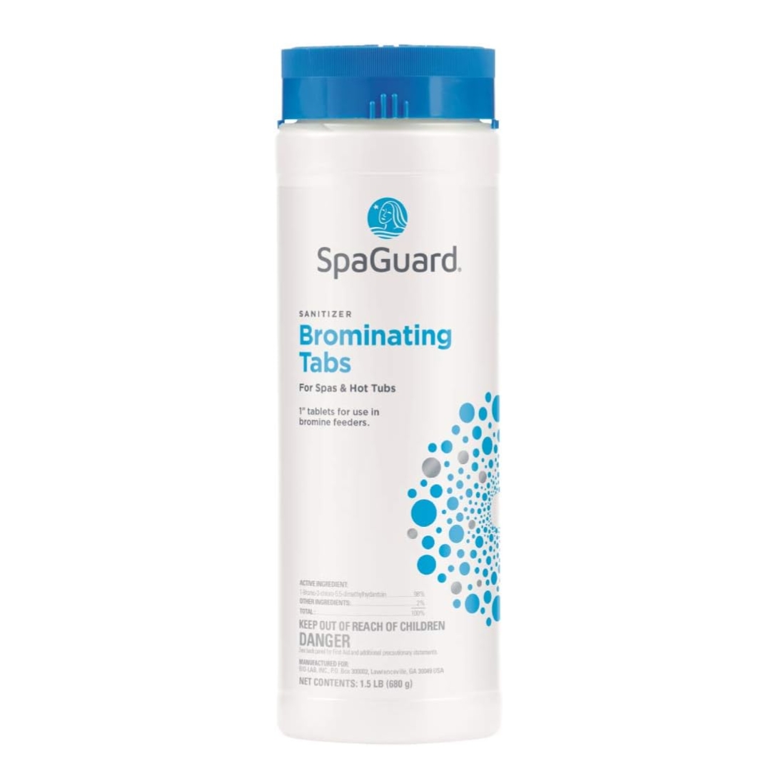 SpaGuard Brominating Tablets provide a reliable and effective way to sanitize your spa or hot tub water. Formulated for long-lasting disinfection, these tablets kill bacteria and control algae growth while remaining gentle on skin and eyes. Designed for use in spa feeders or floaters, they dissolve slowly to maintain consistent bromine levels. With a 1.5 lb pack, it’s a convenient and easy solution for clean, clear, and safe spa water.